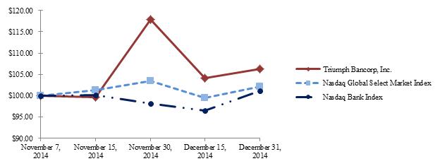 Triumph Bancorp, Inc. (“we”, “Triumph” or the “Company”), is a financial holding company headquartered in Dallas, Texas and registered under the Bank Holding Company Act of 1956, as amended (the “BHC Act”). Through our two wholly owned bank subsidiaries, Triumph Savings Bank, SSB (“Triumph Savings Bank”) and Triumph Community Bank, N.A. (“Triumph Community Bank”), we offer traditional banking services as well as commercial finance products to businesses that require specialized financial solutions. Our community banking operations include a full suite of lending and deposit products and services focused on our local market areas. These activities generate a stable source of core deposits and a diverse asset base to support our overall operations. Our commercial finance products include factoring, asset-based lending, equipment lending and healthcare lending products offered on a nationwide basis. These product offerings supplement the asset generation capacity in our community banking markets and enhance the overall yield of our loan portfolio, enabling us to earn attractive risk-adjusted net interest margins. In addition, through our Triumph Capital Advisors subsidiary, we provide investment management services currently focused on the origination and management of collateralized loan obligations. We believe our integrated business model distinguishes us from other banks and non-bank financial services companies in the markets in which we operate. As of December 31, 2014, we had consolidated total assets of $1.448 billion, total loans held for investment of $1.006 billion, total deposits of $1.165 billion and total stockholders’ equity of $238 million.