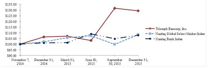 Triumph Bancorp, Inc. (“we”, “Triumph” or the “Company”), is a financial holding company headquartered in Dallas, Texas and registered under the Bank Holding Company Act of 1956, as amended (the “BHC Act”). Through our wholly owned bank subsidiary, TBK Bank, SSB (“TBK Bank”), we offer traditional banking services as well as commercial finance products to businesses that require specialized financial solutions. Our community banking operations include a full suite of lending and deposit products and services focused on our local market areas. These activities generate a stable source of core deposits and a diverse asset base to support our overall operations. Our commercial finance products include factoring, asset-based lending, equipment lending, healthcare lending and premium finance products offered on a nationwide basis. These product offerings supplement the asset generation capacity in our community banking markets and enhance the overall yield of our loan portfolio, enabling us to earn attractive risk-adjusted net interest margins. In addition, through our wholly owned subsidiary Triumph Capital Advisors, LLC (“Triumph Capital Advisors”), we provide investment management services currently focused on the origination and management of collateralized loan obligations. We believe our integrated business model distinguishes us from other banks and non-bank financial services companies in the markets in which we operate. As of December 31, 2015, we had consolidated total assets of $1.691 billion, total loans held for investment of $1.292 billion, total deposits of $1.249 billion and total stockholders’ equity of $268 million.