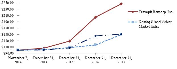 Triumph Bancorp, Inc. (“we”, “Triumph” or the “Company”), is a financial holding company headquartered in Dallas, Texas and registered under the Bank Holding Company Act of 1956, as amended (the “BHC Act”). Through our wholly owned bank subsidiary, TBK Bank, SSB (“TBK Bank”), we offer traditional banking services as well as commercial finance products to businesses that require specialized financial solutions. Our community banking operations include a full suite of lending and deposit products and services focused on our local market areas. These activities generate a stable source of core deposits and a diverse asset base to support our overall operations. Our commercial finance products include factoring, asset-based lending, equipment lending, and premium finance products offered on a nationwide basis. These product offerings supplement the asset generation capacity in our community banking markets and enhance the overall yield of our loan portfolio, enabling us to earn attractive risk-adjusted net interest margins. We believe our integrated business model distinguishes us from other banks and non-bank financial services companies in the markets in which we operate. As of December 31, 2017, we had consolidated total assets of $3.499 billion, total loans held for investment of $2.811 billion, total deposits of $2.621 billion and total stockholders’ equity of $391.7 million.