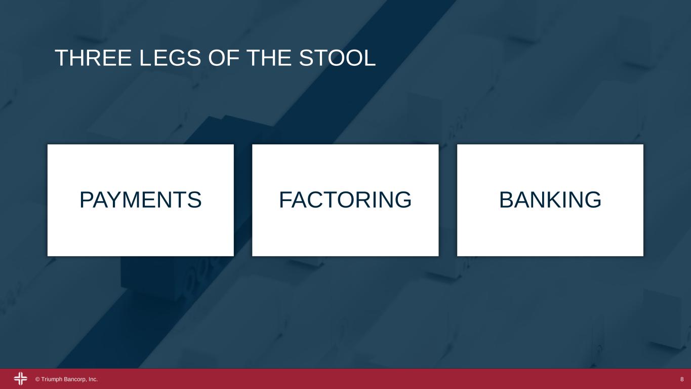 © Triumph Bancorp, Inc. THREE LEGS OF THE STOOL PAYMENTS FACTORING BANKING 8